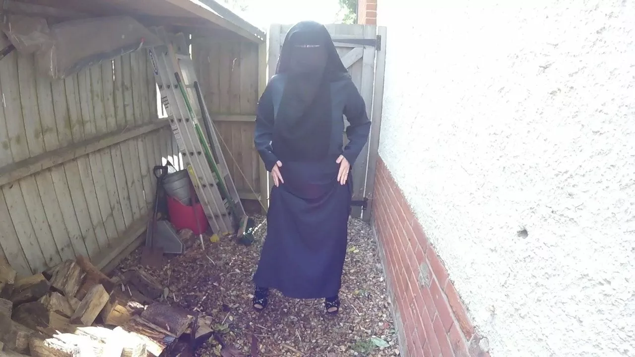 Burqa and pantyhose in the rain
